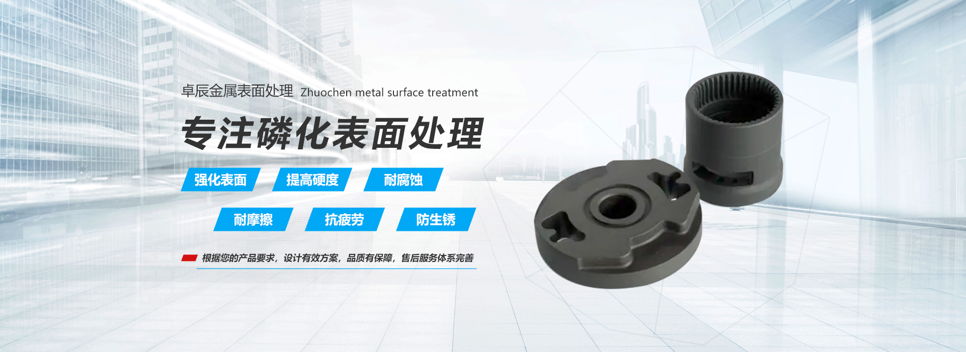 磷化主要用於汽車、船舶、機電、機械、五金、軸承、紡機等零部件的處理。鹽霧試驗可達100個小時以上,同時起到防腐、潤滑、耐摩和美觀的目地。公司主要經營範圍有:金屬磷化、高溫磷化、鋅係磷化、灰磷化、黑磷化等技術,強化金屬材料表麵、提高材料表麵硬度、有效解決金屬零件耐腐蝕、耐摩擦、抗疲勞、不變形等方麵問題。